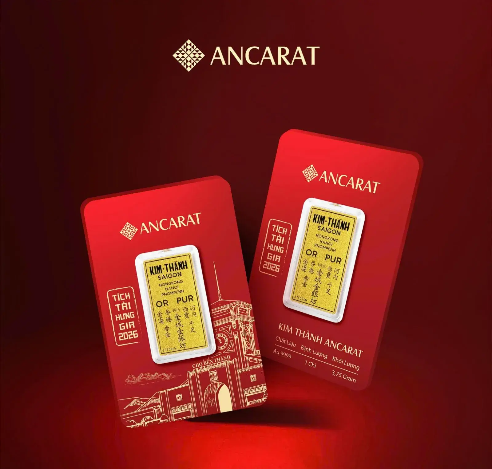 Đây là dòng sản phẩm đặc biệt được hồi sinh bởi Ancarat, lấy cảm hứng từ những lá vàng Kim Thành huyền thoại – "đồng tiền chung" lừng lẫy của Đông Nam Á thế kỷ trước. Điểm nhấn độc đáo nhất chính là hình ảnh Chợ Bến Thành được chạm khắc tinh xảo trên bề mặt vàng rồng 999.9. Sự kết hợp giữa thương hiệu vàng di sản và biểu tượng văn hóa số 1 của Sài Gòn đã tạo nên một vật phẩm mang giá trị độc bản.