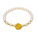 Vòng tay ngọc trai phối hoa hồng mix bi vàng