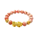 Vòng tay đá đào hoa phối hột tròn kim tiền mix tỳ hưu LV