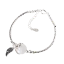 Vòng tay đá moonstone phối charm bạc đôi cánh mix bạc