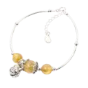 Vòng tay mèo chiêu tài bạc phối đá thạch anh tóc vàng mix bạc